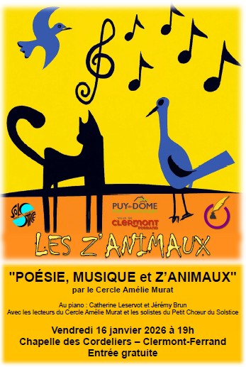 Venez les écouter le vendredi 16 janvier 19H dans la Chapelle des Cordeliers devenue à cet effet la maison des z’animaux….